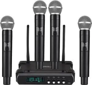 XTUGA UF4600 4 Channel UHF Wireless Microphone System Cordless Microphone with 4 Handheld Mic Mini Receiver Metal Build Long Distance 164ft for Church, Party, Outdoor Events