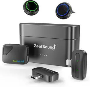 ZealSound Wireless Lavalier Microphone for iPhone iPad Android Tablets PC Camera(USB-C/Lightning/DSLR) -2.4GHz Noise Reduction/40H Battery Life with Charging Case,1000ft,Magnetic Clip for Podcast Vlog