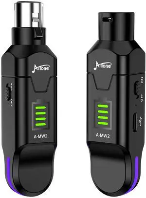 Wireless XLR Transmitter and Receiver 2.4GHz Wireless Microphone System, 48V phantom power, Ultra-Low Latency for Dynamic/Condenser Mics, PA, Live Streaming, Studio (A-MW2)