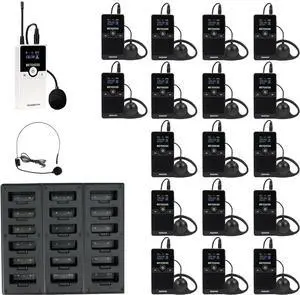 Wireless Tour Guide System, Tour Guide Headsets, Replaceable Battery, Type-C charging Port, Whisper System with Charger Base for Factory(1 Transmitter 17 Receivers)