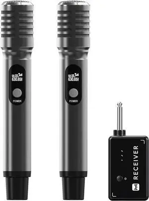 UHF Rechargeable Wireless Microphone System with 2 x Handheld Mic, 1/4" Mini Portable Rechargeable Bluetooth Receiver, Built-in EQ, Effects for Karaoke, Events, Church, Meetings