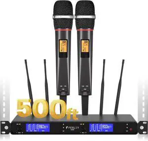 Wireless Microphone System: Handheld 500ft UHF Range Dynamic Wireless Microphones Mic, Auto Scan Cordless Microphone and Receiver, Microfono Inalambrico for Karaoke, Church, Singing, Wedding