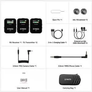 SYNCO Wireless Microphone System with Charging Case, G2A1 MEGA RX+TX 8GB Storage of 24H 656ft Video Recording Streaming for DSLR/Phone/PC/Laptop, Professional-Lav-Mic-for-Camera