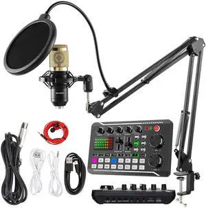 Podcast Microphone Bundle, BM-800 Condenser Mic with Live Sound Card Kit, Podcast Equipment Bundle with voice changer and Mixer functions for PC Smartphone Studio Recording & BroadcastingBrand: PyleSeries: F998 Microphone BundlePart Number: F998Specification: microphone, 4, Bluetooth, USB, true, false, lithium_polymer, 2.5 grams, 7.5946 L x 23.7998 W x 41.783 H centimeters, 1 year manufacturer.Model #: 996233512767