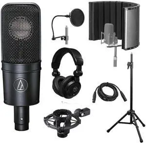 AT4040 Side-Address Cardioid Condenser Microphone with Reflection Filter, Tripod Stand, Pop Filter, Studio Monitor Headphones, 10' XLR Cable, Vocal Recording Setup Kit (6 Items)
