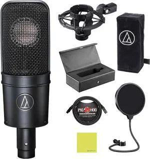 Audio Technica AT4040 Cardioid Condenser MicrophoneBundle w/Pig Hog PHM10 8mm Mic Cable, Pop Filter Polishing Cloth
