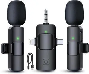 Wireless Lavalier Microphones for iPhone, iPad, Android, Camera, 3 in 1 USB-C Microphone, Mic 7-Hour Battery, Mini Microphone with Noise Reduction for Video Recording, Vlog, YouTube, TikTok