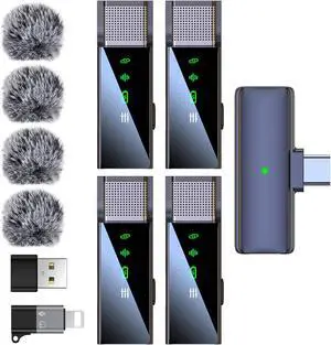 Professional Wireless Lavalier Microphone for iPhone/iPad ,4 Channel ,4 in 1 Charging case ,Mini Video Recording Mic for Interview Video Podcast Vlog YouTube & Livestream, Noise Reduction, Plug & Play
