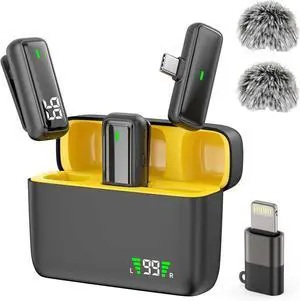 V3 Combo Wireless Microphone for iPhone/Andriod/PC/Laptop with USB-C/Lightning Port, 36H Battery Life with Charging Case, Noise Canceling Lapel Microphone Wireless Mini Mic for Video Recording