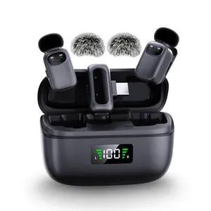 Wireless Lavalier Microphone for iPhone/Android/Camera, 2 Pack Cordless Lapel Mic System for Vlog Recording Video YouTube/TikTok Interview, Condenser Clip-On Microphone with Charging Case-M9