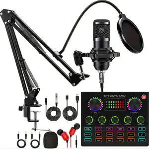 Podcasting Equipment Bundle, BM-800 Studio Kit with Voice Converter for Gamers,and All-in-One DJ Mixer Perfect for Laptop Vlog Living Broadcast Live YouTube TikTok (V8K)