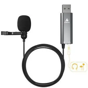 USB Lapel Microphone, Plug & Play Mini Omnidirectional Clip On Lavalier Mic with 3.5mm Monitoring Headphones Jack for USB 2.0 Mac Windows PC Laptop Computer YouTube Skype Podcast Gaming, LM2