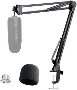 Blue Yeti Mic Boom Arm with Foam Windscreen Suspension Boom Scissor Arm Stand with Pop Filter Cover for Blue Yeti Pro Microphone by