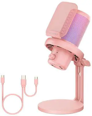 VM1 Pink Gaming PC USB Microphone Condenser Mic with Noise Cancellation Mute RGB Light, Computer Accessories Gifts for Gamer YouTube Twitch Podcast Streaming Recording Online Chat PS4 PS5