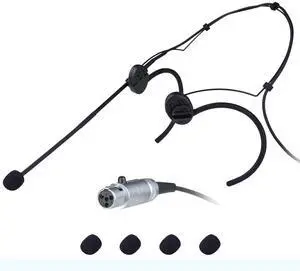 Foldable Headset Microphone for Shure Wireless System, Omnidirectional Condenser Double Over Ear Headworn Mic, 4-Pin Mini XLR, Cable Length 42 Inch (Black)