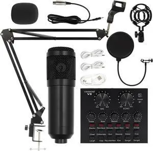 Sound Card Kit Professional Condenser Microphone Kits V8 Sound Card Karaoke with Microphone Stand Condenser USB MIC Live Streaming Studio Setup for Recording MusicBm800 1