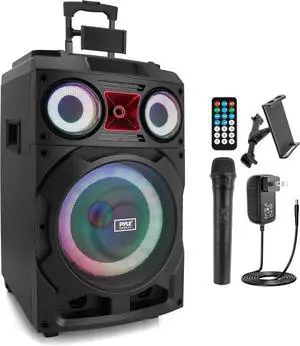 10 Portable Bluetooth PA Speaker System TWS Pairing, Rechargeable Battery, LED Display, FM/Aux/USB/MP3/SD Inputs, 1/4 Mic Jack, Wireless Audio for Events, DJ, Karaoke, Outdoor Use, Black
