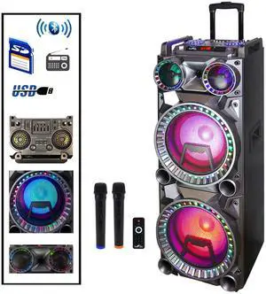 Gemini GSP-L2200PK Unleash the Ultimate 15" Bluetooth Party Speaker with Dynamic LED Lights, Built in Media Player, and Included Microphone and Speaker Stand