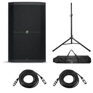Mackie Thump215XT 15" 1400W Enhanced Powered PA Loudspeaker, Bundle with Stand and 2x 25' XLR Microphone Cable