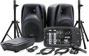 Gemini Sound Professional PA System - Dual 10" Speakers with 600W Amp, Bluetooth, Mixer, USB/SD, Durable Design, Includes 2 Speaker Stands for DJs, Musicians