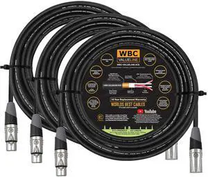WBC-VALUELINE-2CS (22 AWG) - 3 Units - 50 FootLow-Capacitance Shielded Balanced Flexible Microphone, Active-Speaker & Interconnect Cables with Eminence Gold XLR Connectors