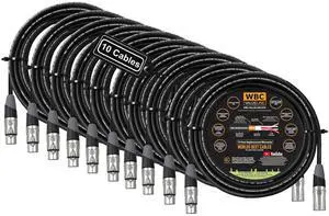 WBC-VALUELINE-2CS (22 AWG) - 10 Units - 10 FootLow-Capacitance Shielded Balanced Flexible Microphone, Active-Speaker & Interconnect Cables with Eminence Gold XLR Connectors