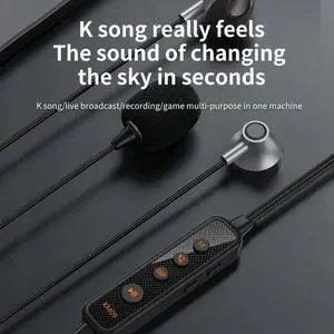KM09 Sound Card Karaoke Headset with in-Ear Monitoring, Voice Changer, Built-in Sound Card, Portable Karaoke Microphone & Headphones, Type C Bluetooth Wired Earbuds for Live Stream/Karaoke/Gaming