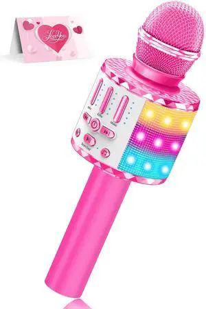 Karaoke Microphone Toys for Kids, Wireless Bluetooth Mic with Lights & Speaker, Portable Home KTV Player System, Perfect Birthday Party for 3-12 Year Old Boys & Girls