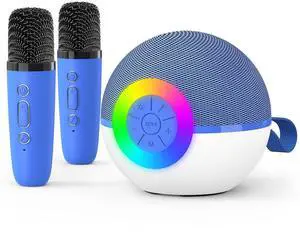 Mini Karaoke Machine Speaker for Kids Adults, Portable Bluetooth Microphone Song Toys with LED Light, Best Chritmas Birthday Festival Gift for 3 4 5 6 7 8+ Year Old Girls Boys (Blue-2MIC)