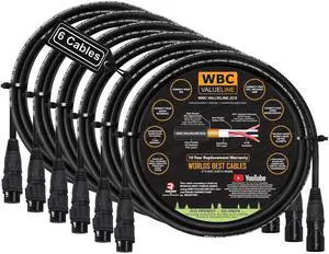 WBC-VALUELINE-2CS (22 AWG) - 6 Units - 50 FootLow-Capacitance Shielded Balanced Flexible Microphone, Active-Speaker & Interconnect Cables with Eminence Gold XLR Connectors