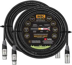 WBC-VALUELINE-2CS (22 AWG) - 10 Units - 50 FootLow-Capacitance Shielded Balanced Flexible Microphone, Active-Speaker & Interconnect Cables with Eminence Gold XLR Connectors