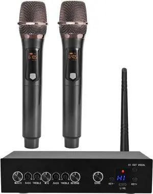 Wireless Microphones, Metal UHF Dual Handheld Dynamic Mic System,Microfonos Inalambricos with Rechargeable Receiver,160ft Range,for Karaoke, Speech, Wedding, Church, PA System,Singing Machine