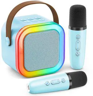 Mini Karaoke Machine for Kids Adults, Portable Bluetooth Speakers with 2 Wireless Microphones and Lights, Christmas Birthday Gifts Toys for Girls Boys 4, 5, 6, 7, 8, 9, 10, 12+ Toddler- Series: S15