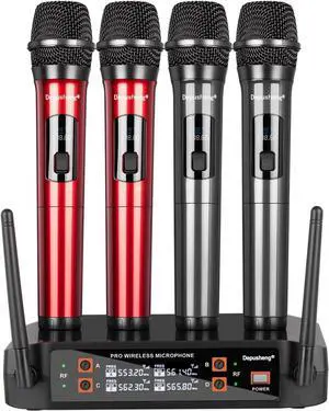 Depusheng Wireless Microphone, Professional 4 Channels Karaoke Handheld System for Home Karaoke, Meeting, Party, Church, DJ, Wedding, Home KTV Set