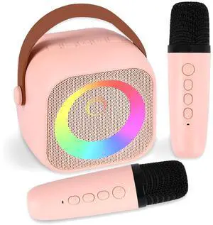 Mini Karaoke Machine for Kids Adults, Portable Bluetooth Speaker with 2 Wireless Microphones,Toys Birthday Gifts for Girls Ages 4, 5, 6, 7, 8,9,10,11,12+ Family Home Party (Pink)- Brand: Koolcover