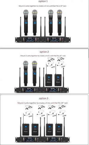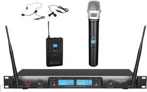 GTD Audio 2x100 Selectable Channel UHF Wireless Microphone Karaoke Mic System (with Handheld, lavvelier Headset mics) 622HL