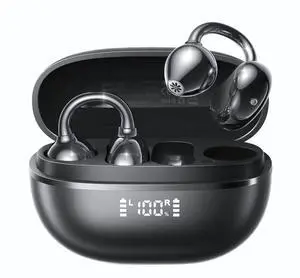 ClipFree A20 Open-Ear Earbuds, Secure & Comfort Fit, Premium Sound Clip-On Earbuds with Digital Display, 45H Playtime Bluetooth 6.0 Wireless Headphones, IP55 Waterproof for Running, Black