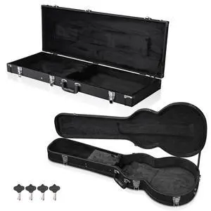 Yescom 2 Set Electric Guitar Hard Cases Wooden Shell for Les Paul Style & Universal Fit Portable Gig Bag with Lock Studio Travel