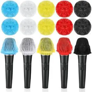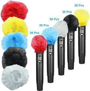 100 Pcs Disposable Microphone Hygiene Covers, Non-woven Handheld Mic Windscreen for KTV, Karaoke and Stage Performances (5 Colors
