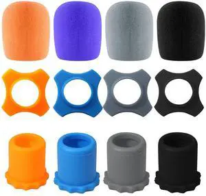 4 Set Microphone Protection Foam Mic Cover - Including 4 Pcs Foam Microphone Windscreen Cover - 4 Pcs Silicone Rings - 4 Pcs Bottom Rod Sleeve Holder