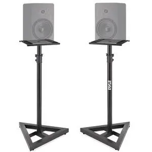 Speaker Stand Pair of Sound Play 1 and 3 Holder - Telescoping Height Adjustable from 26 - 52 Inch High Heavy Duty Three-point Triangle Base w/ Floor Spikes and 9 Square Platform, Black