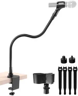 19-Inch Gooseneck Mic Stand for Desk - Clamp On Desktop Microphone Arm with Heavy-Duty Table Clip, 5/8" to 3/8" & 1/4" Adapters Included, Ideal for Podcast, Pulpit & Podium Mic Holder, Black