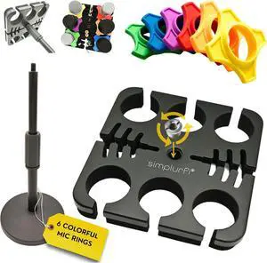 Multi Microphone Holder Cable Hanger & Organizer with Desktop Mic Stand - Square Tray Attachment holds up to 6 mics On Stage Organizer and Display - 6 Anti-roll Rings Included