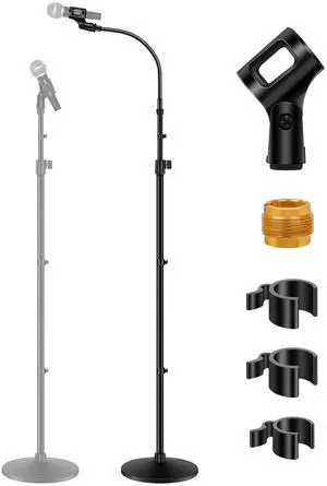 Microphone Stand, Mic Stand Detachable Gooseneck Mic Floor Stand Height Adjustable from 32 to 70 with Weighted Round Base for Blue Yeti Blue Snowball Shure SM7B Shure SM58 Samson Q2U