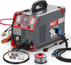 AWT MIG Welder, 200Amp 8 in 1 Gas MIG/Gasless Flux Core MIG/Stick/Lift TIG/Spot Welding/Spool Gun Aluminum MIG Welder, 110/220V Dual Voltage, Multi-Process Welding Machine With LED Digital Display