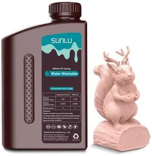 SUNLU Water Washable 3D Printer Resin, 1kg Fast Curing 3D Resin for 2K 4K 8K LCD DLP SLA Resin 3D Printer, 395-405nm UV Curing 3D Printing Photopolymer Resin, Low Shrinkage High Precision, Cream Beige