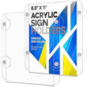 2 Pack 8.5x11 Acrylic Sign Holders with Suction Cups, Window Sign Holder, No-Drill Wall Mount - Durable Display & Quick Paper Change for Office, Store & Restaurant Ads