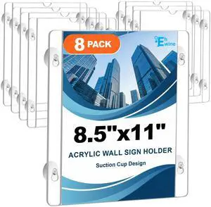8 Pack Acrylic Window Sign Holder 8.5×11 with 4 Suction Cups, Clear Acrylic Frames Glass Door Wall Mount Advertising Signage Sign Holder for Store, School, Office, Home