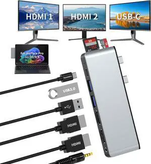 USB C Docking Station Dual Monitor, 7-in-1 Laptop Dock with 2 HDMI,100W PD, USB 3.0, SD/TF Card Reader Ports, Laptop Docking Station for Dell, HP, Lenovo, Surface and MoreBrand: AuimceColor: GrayCompatibility: USB C Laptops(The usb type c interface of the laptops supports full functions with Delivery+DisplayPort+Data Transfer), USB-C Device, Smartphones, Tablets, Keyboards, Monitors, Card ReadersPorts Spec: 7Model #: 253754841053