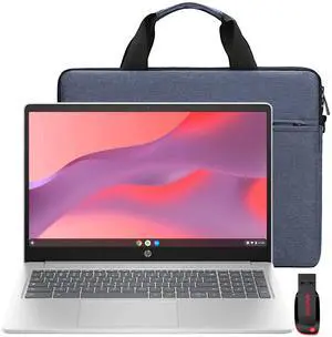 HP 15.6" Chromebook Laptop - Intel Processor N200 2023 - 8GB Memory, 64GB eMMC (Natural Silver) + Splash Proof Laptop Bag